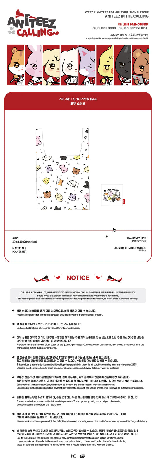 ATEEZ - ANITEEZ IN THE CALLING MD POCKET SHOPPER BAG